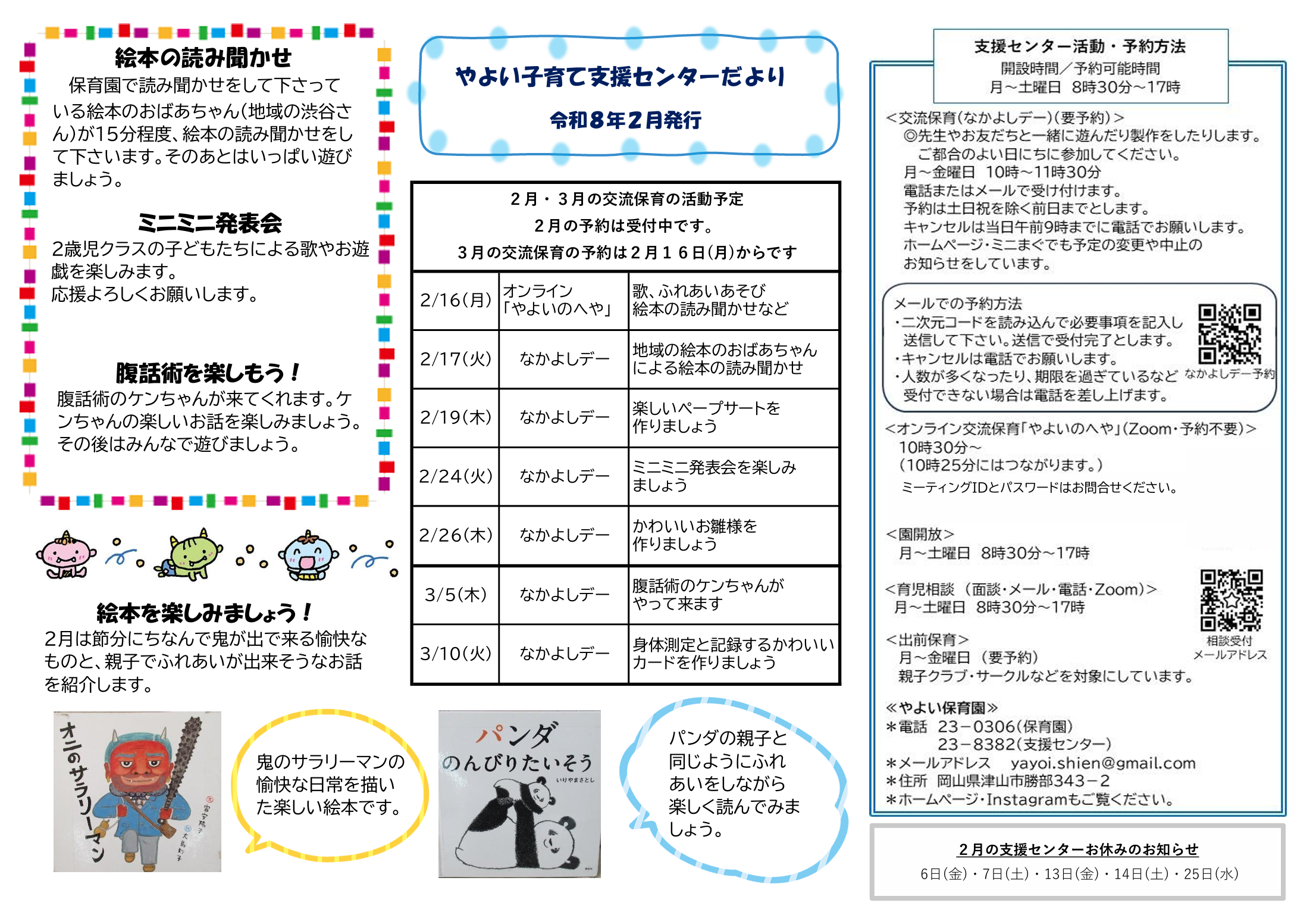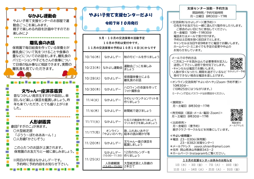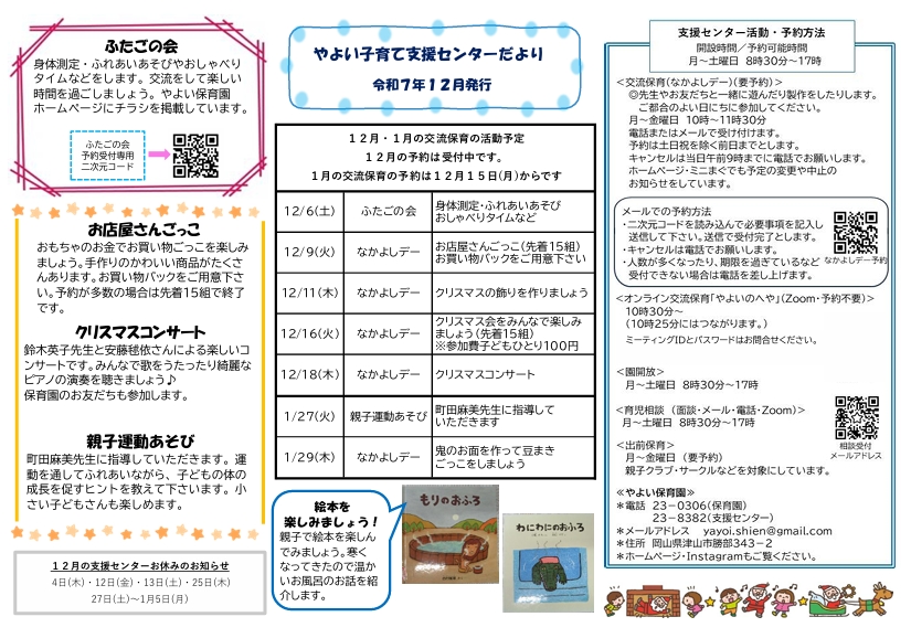 『子育て支援センターだより』 (随時更新しています。ご覧いただき、ご参加ください。)